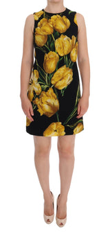 Gorgeous brand new with tags, 100% Authentic Dolce & Gabbana black with yellow tulips print shift dress.