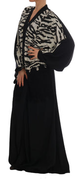 Black Zebra Kaftan Abaya Cape Silk Dress