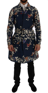 Absolutely stunning, 100% Authentic, brand new with tags Dolce & Gabbana blue bird print cotton stretch trench coat.
