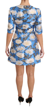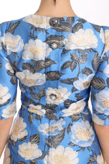 Color: Blue with white floral pattern jacquard