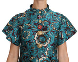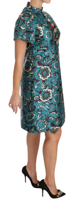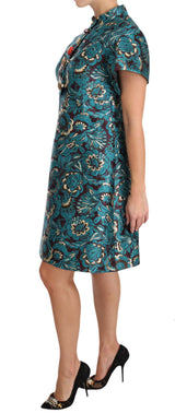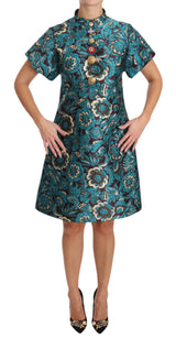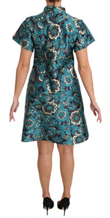 Color: Blue with floral pattern jacquard, brown and gold detailing