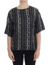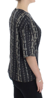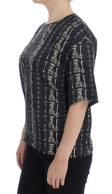 Gorgeous brand new with tags, 100% Authentic DOLCE & GABBANA blue silk blouse top with medieval Keys and Castle print. This item comes from the exclusive MainLine Dolce & Gabbana Collection.