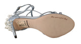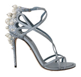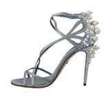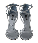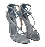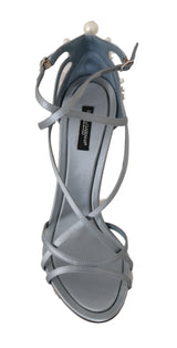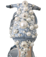 Gorgeous brand new with tags 100% Authentic Dolce & Gabbana blue silk white pearl stiletto sandals shoes .