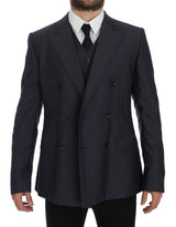 Absolutely stunning, 100% Authentic, brand new with tags Dolce & Gabbana blue wool silk double breasted blazer and vest. This item comes from the exclusive MainLine Dolce & Gabbana collection.