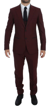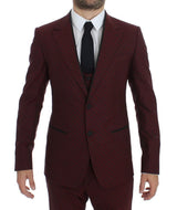 Absolutely stunning, 100% Authentic, brand new with tags Dolce & Gabbana bordeaux with gray polka dots wool stretch 2 button single breasted slim fit 3 piece Suit. This item comes from the exclusive MainLine Dolce & Gabbana collection.