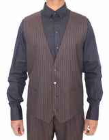 Absolutely stunning, 100% Authentic, brand new with tags Dolce & Gabbana brown striped wool stretch Dress Vest. This item comes from the MainLine Dolce & Gabbana collection.