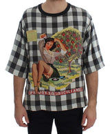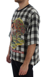 Absolutely stunning, 100% Authentic, brand new with tags Dolce & Gabbana black and white checkered motive print silk crewneck t-shirt.