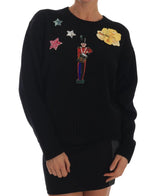 Gorgeous brand new with tags, 100% Authentic DOLCE & GABBANA black wool and cashmere Fairy Tale applique crystal sweater.