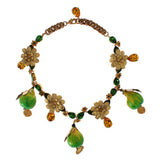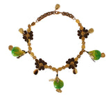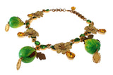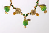 Gorgeous brand new with tags and box, 100% Authentic Dolce & Gabbana gold plated brass Fig Fruit Sicily charms crystal necklace.