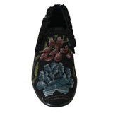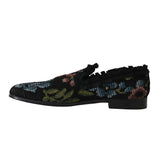 Color: Black with multicolor floral embroidery Fiori Tappezzeria Ricamo