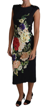 Gorgeous brand new with tags, 100% Authentic Dolce & Gabbana black floral print and floral appliqué sheath dress.