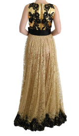 Gorgeous brand new with tags, 100% Authentic Dolce & Gabbana gold and black floral lace gown dress.
