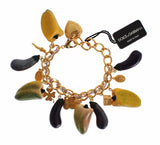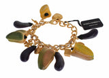 Gorgeous brand new with tags and box, 100% Authentic Dolce & Gabbana gold brass Aubergine and paprika Sicilian charms Bracelet. This item comes from the exclusive MainLine Dolce & Gabbana collection.