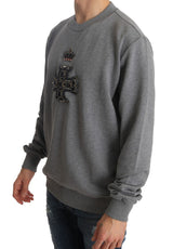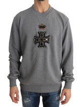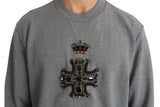 Gray Cotton Crystal Royal Crown Cross Sweater
