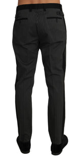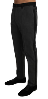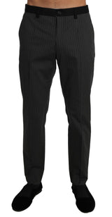 Gray Cotton Wool Striped Stretch Trousers Pants