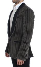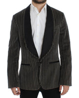 Absolutely stunning, 100% Authentic, brand new with tags Dolce & Gabbana gray and black striped one button SICILIA Blazer Jacket. This item comes from the exclusive MainLine Dolce & Gabbana collection.