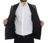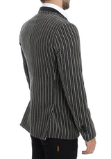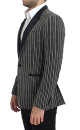 Absolutely stunning, 100% Authentic, brand new with tags Dolce & Gabbana gray and black striped one button slim fit Blazer Jacket. This item comes from the exclusive MainLine Dolce & Gabbana collection.