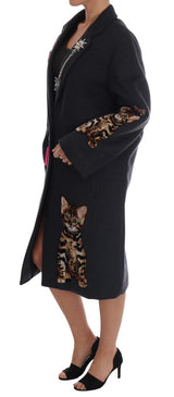 Gorgeous brand new with tags, 100% Authentic Dolce & Gabbana gray cashmere wool crystal cat fairy tale coat jacket.
