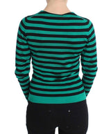 Gorgeous brand new with tags, 100% Authentic DOLCE & GABBANA black and green striped cashmere and silk pullover crewneck sweater.