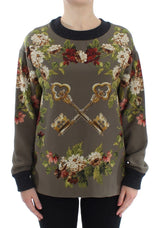 Gorgeous brand new with tags, 100% Authentic DOLCE & GABBANA green enchanted SICILY key and floral print silk blouse sweater. This item comes from the exclusive MainLine Dolce & Gabbana Collection.