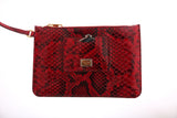Detachable red snakeskin clutch wallet with branded mirror