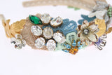 Material: 40% Cotton, 15% Silk, 5% Suede, 30% Crystal, Brass
