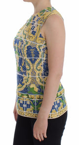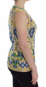 Gorgeous brand new with tags, 100% Authentic DOLCE & GABBANA multicolored Majolica embroidered front sleeveless tank top. This item comes from the exclusive MainLine Dolce & Gabbana Collection.