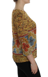 Gorgeous brand new with tags, 100% Authentic DOLCE & GABBANA multicolor Mosaic print silk stretch blouse top. This item comes from the exclusive MainLine Dolce & Gabbana Collection.