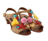 Gorgeous, brand new with tags 100% Authentic Dolce & Gabbana Sicily motive ankle strap straw crystal sandals shoes.