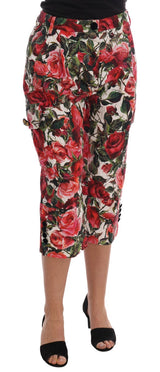 Gorgeous brand new with tags, 100% Authentic DOLCE & GABBANA red roses print brocade capri pants.