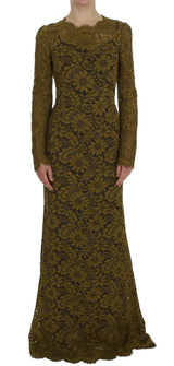 Gorgeous brand new with tags, 100% Authentic Dolce & Gabbana olive green floral lace long sleeve full length maxi bodycon dress.