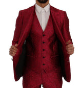 Absolutely stunning, 100% Authentic, brand new with tags Dolce & Gabbana pink jacquard 2 button single breasted slim fit 3 piece Suit. This item comes from the exclusive MainLine Dolce & Gabbana collection.