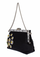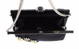 Gorgeous brand new with tags, 100% Authentic Dolce & Gabbana Black floral brocade crystal embedded VANDA shoulder hand clutch evening purse.