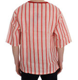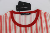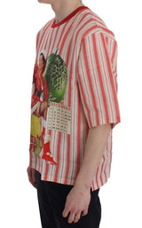 Absolutely stunning, 100% Authentic, brand new with tags Dolce & Gabbana red and white striped DICEMBRE motive print linen crewneck t-shirt.