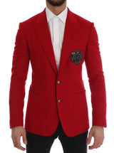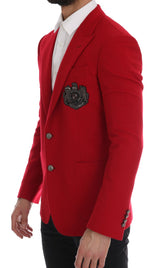 Absolutely stunning, 100% Authentic, brand new with tags Dolce & Gabbana red cashmere slim fit Royal Crown embroidery blazer jacket.