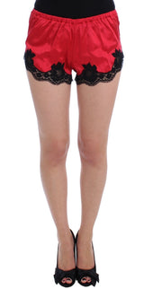 Gorgeous brand new with tags, 100% Authentic Dolce & Gabbana red silk stretch black lace mini shorts.