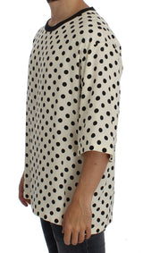 Absolutely stunning, 100% Authentic, brand new with tags Dolce & Gabbana white and black polka Silk dotted shortsleeve crewneck t-shirt.