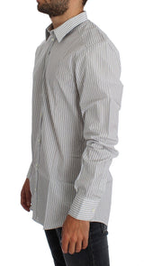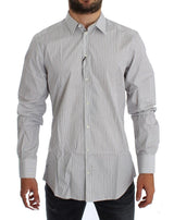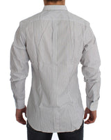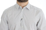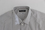Absolutely stunning, 100% Authentic, brand new with tags Dolce & Gabbana white with blue and brown stripes GOLD slim fit cotton shirt. This item comes from the exclusive MainLine Dolce & Gabbana collection.