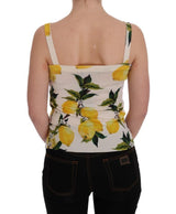 Gorgeous brand new with tags, 100% Authentic DOLCE & GABBANA white lemon print cashmere silk tank top blouse.