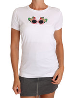 Color: White with multicolor sunglasses applique