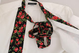 Style: Collarless dress shirt with floral print scarf
