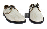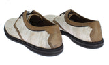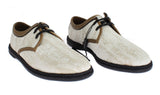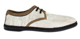 Gorgeous brand new with tags, 100% Authentic Dolce & Gabbana white denim and brown leather laceup casual shoes. This item comes from the exclusive MainLine Dolce & Gabbana collection.