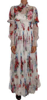 Gorgeous brand new with tags, 100% Authentic DOLCE & GABBANA white with multicolor floral print full length long sleeve dress.