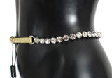 Absolutely stunning, 100% Authentic, brand new with tags Dolce & Gabbana yellow leather clear crystal waist belt. This item comes from the MainLine Black Label Dolce & Gabbana collection. Runway item. Great item that can lift and entire outfit.