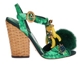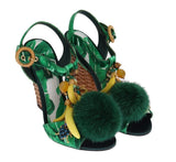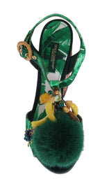 Gorgeous brand new with tags, 100% Authentic Dolce & Gabbana Banana motivve crystal mink fur t-strap sandals shoes.