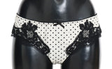 Color: Natural White with black floral lace and polka dots