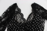 Color: Black, white polka dots, multicolor floral detailing