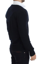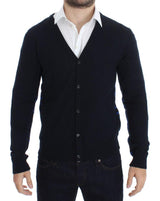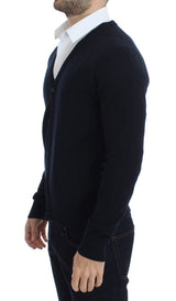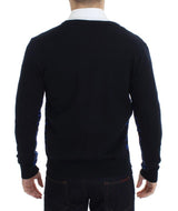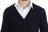 Blue Wool Button Down Logo Cardigan