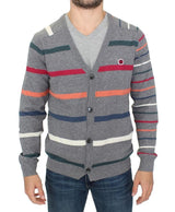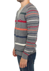 Absolutely stunning, 100% Authentic, brand new with tags Galliano gray with multicolor stripes wool cardigan sweater.
