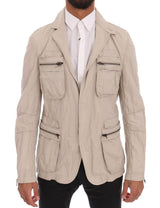 Beige Cotton Casual Jacket